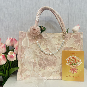 粉色包+珍珠挂件+香槟色花朵尺寸30x22x12