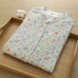 秋装 双层棉纱长袖衬衫女文艺清新印花小立领柔软亲肤透气上衣