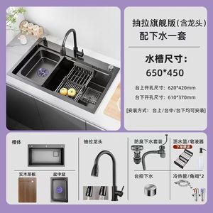 加厚纳米黑65CMx45CM-旗舰套餐【抽拉龙头+台控下水】