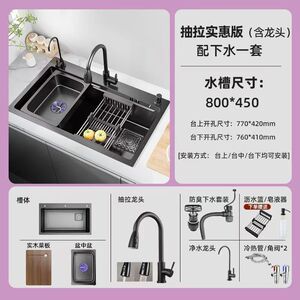 加厚纳米黑80CMx45CM-旗舰套餐【三档抽拉龙头+台控下水】