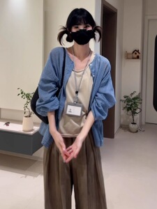衬衫+背心+阔腿裤 三件套