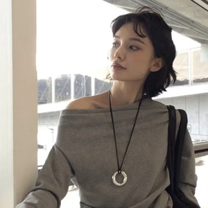 张悦儿同款镂空圆环吊坠项链韩国ins风甜酷高级感皮绳毛衣链颈链