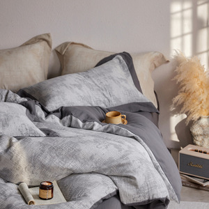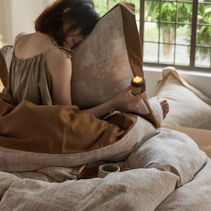 复古风全棉色织双层纱提花床上四件套人字纹床单床品被套1.8m四季