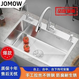 JOMOW不锈钢304大单槽厨房水槽台中台下盆手工拉丝工艺2mm实厚