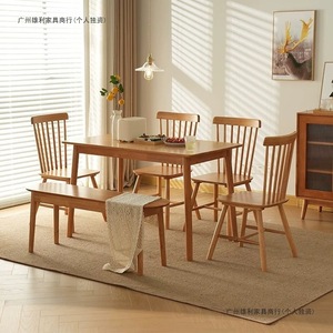 实木餐桌椅组合樱桃木色北欧风家用小户型简约长方形饭桌吃饭桌子