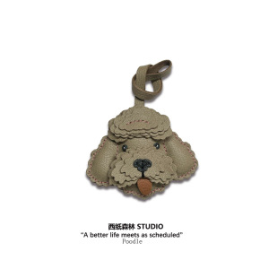 手工缝制法羊Poodle灰色泰迪狗包挂件高级感女钥匙扣汽车礼物装饰