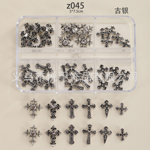 跨境爆款6格套装合金十字架美甲饰品立体金属克罗心简约搭配十字