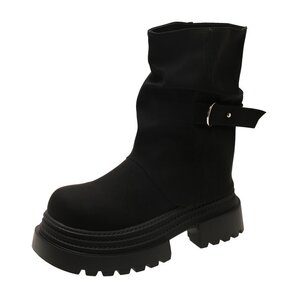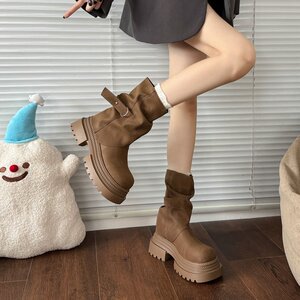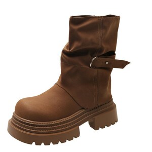 Qiyor棕色厚底马丁靴女2025新款秋季增高裤管靴英伦风美拉德短靴