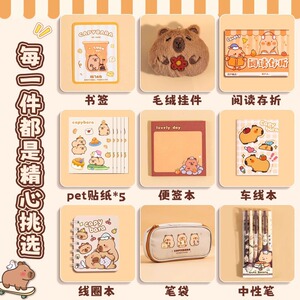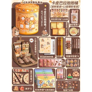 卡皮巴拉抱抱桶文具套装礼盒女孩儿童学习用品大礼包学生生日礼物