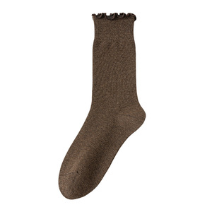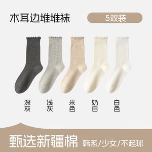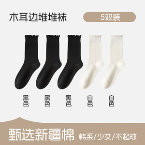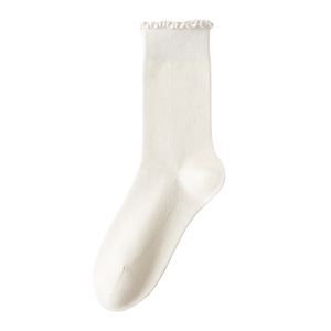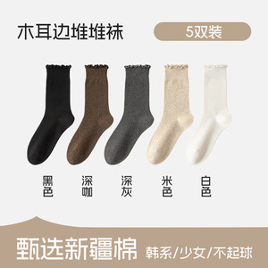 木耳边春秋袜子女中筒袜花边无骨堆堆袜纯色防臭吸汗秋冬诸暨袜子