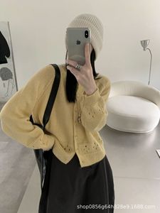 甜美圆领镂空针织开衫薄款毛衣女2025春秋新款宽松软糯小个子上衣