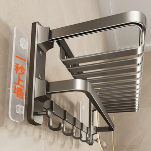 毛巾架卫生间免打孔折叠浴巾架子太空铝挂件厕所洗澡间浴室置物架