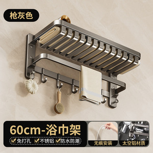 枪灰-60cm双折叠网篮浴巾架【贴片款】