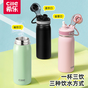希乐保温杯大容量水杯男女316不锈钢吸管杯学生上学专用运动水壶