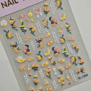 国风富贵菊花美甲贴纸5D浮雕立体诗词刺绣金菊指甲贴纸饰品 SL款