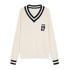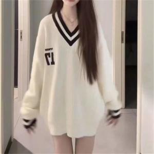 跨境新款秋冬季学院风复古撞色毛衣宽松套头针织衫慵懒风套头上衣
