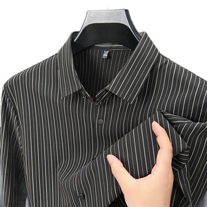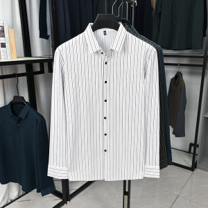 跨境男士衬衫长袖条纹商务休闲上衣秋冬新款高级感翻领开衫衬衣男