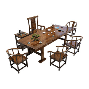 实木大板茶桌椅组合一桌五椅家用茶几茶台烧水壶一体办公室泡茶桌