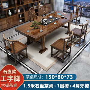 大板2米+1围椅4月牙椅 石盘款/工字腿