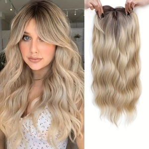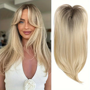 欧美假发渐变色八字刘海化纤补发块长卷发女士自然透气增发量
