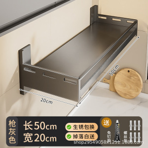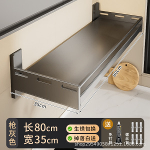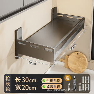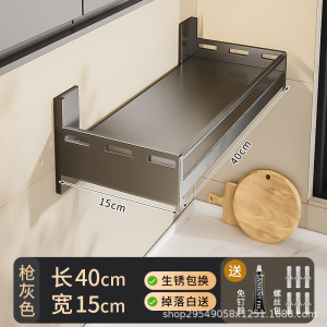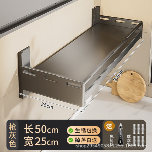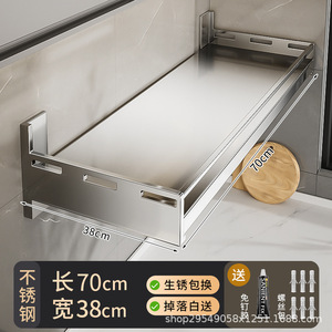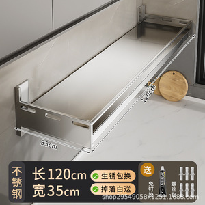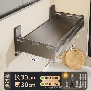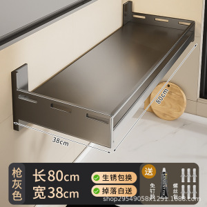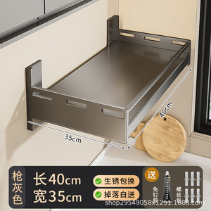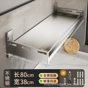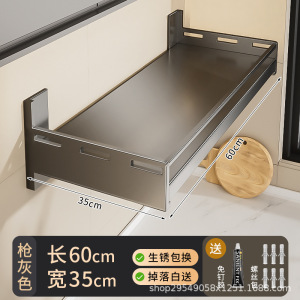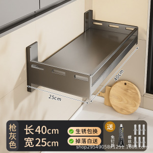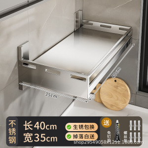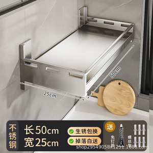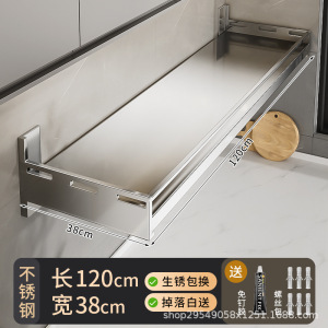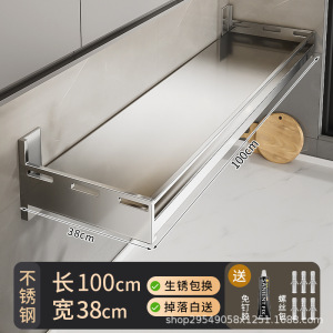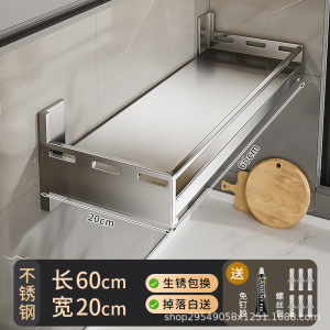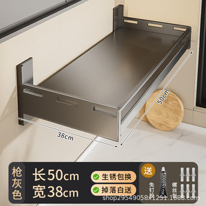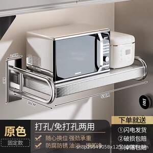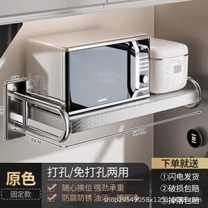 新款304不锈钢壁挂式多功能免打孔厨房微波炉置物架挂墙上收纳架
