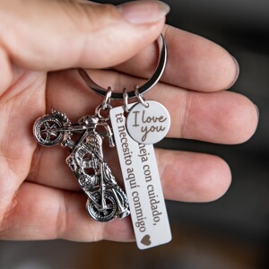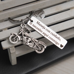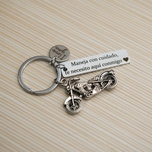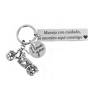 跨境热销摩托车不锈钢钥匙扣刻字创意情侣礼物西班牙语情话挂件