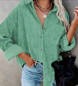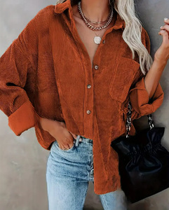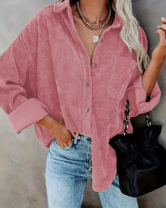 亚马逊跨境欧美女装宽松长袖上衣超大灯芯绒纽扣衬衫独立站temu
