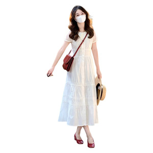 2025新款女装收腰连衣裙子小个子夏季法式气质超好看白色长裙