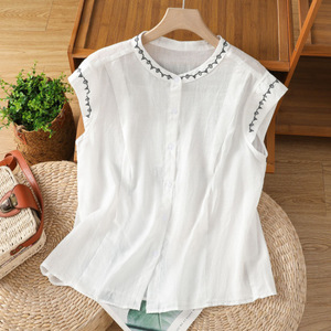 2025无袖文艺减龄刺绣衬衫新款夏季重工小衫复古背心气质上衣女