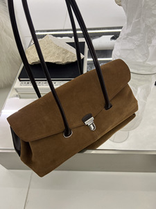 2025秋冬新款磨砂牛皮单肩包大容量法棍包复古女包时尚锁扣手提包