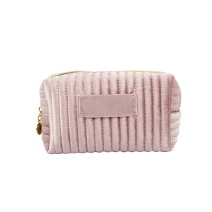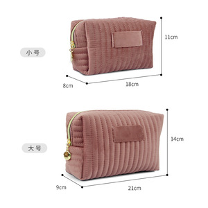 etsy跨境爆品衍缝竖条纹丝绒布化妆包方形旅行护肤品洗漱收纳包袋