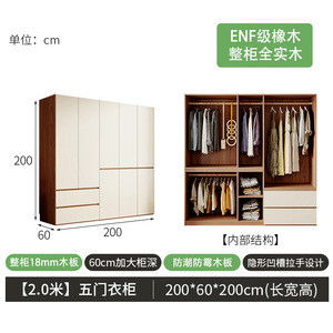 【2.0m长*2.0m高】五门衣柜【木材厚度18mm】