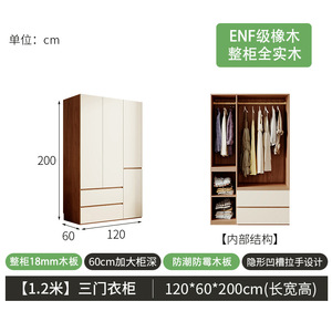 【1.2m长*2.0m高】三门衣柜【木材厚度18mm】