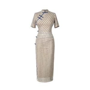新中式国风少女感复古条纹改良旗袍连衣裙