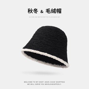 冬季毛绒渔夫帽子女潮网红款小香风显脸小针织水桶帽加绒加厚保暖