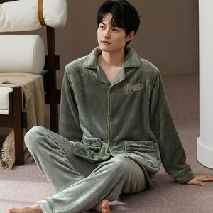 睡衣秋冬季2025加绒加厚法兰绒抗静电长袖长裤青年男士家居服套装