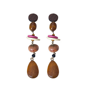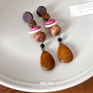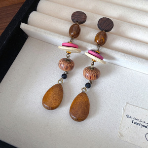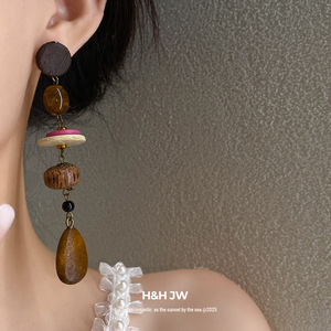 欧美跨境木质民族风流苏耳环复古简约耳钉时尚气质耳饰设计感小众