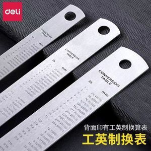 得力8464钢尺加厚不锈钢尺子工程制图直尺多功能双面测量绘图钢尺