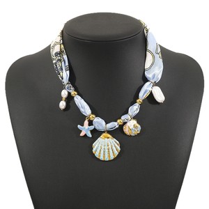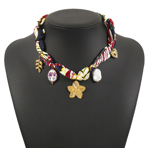 欧美跨境气质百搭文艺清新小众不锈钢颈链花朵陶瓷吊坠丝带项链