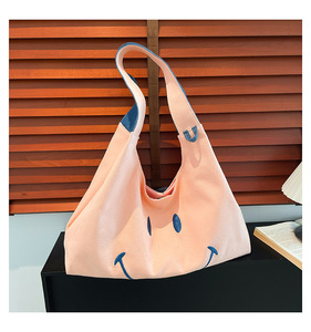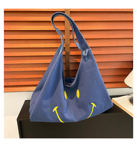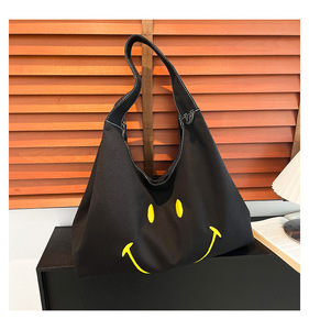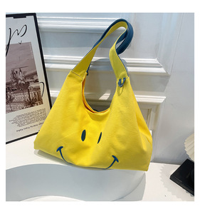 新款韩版大容量笑脸帆布包2025休闲时尚个性潮流休闲腋下单肩包