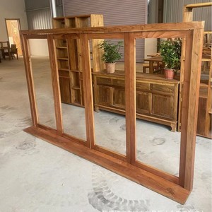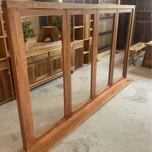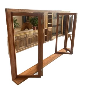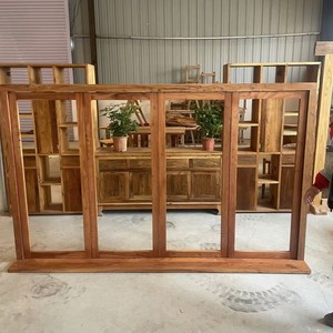 新中式老榆木窗户奶茶店咖啡厅复古门窗框架纯实木折叠门窗框架