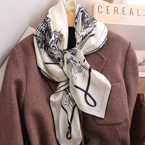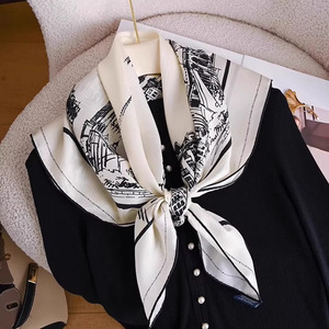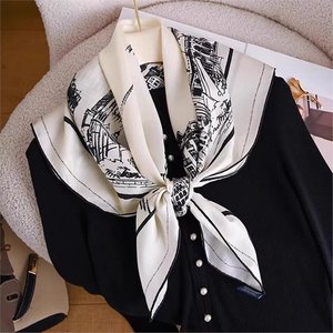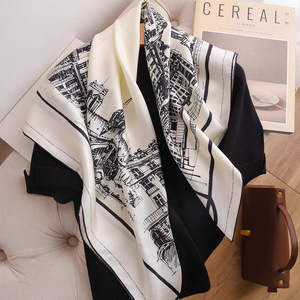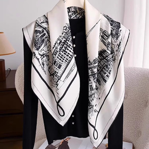100%桑蚕丝90真丝斜纹巴黎街景大方巾女春夏季优雅轻奢感高端丝巾