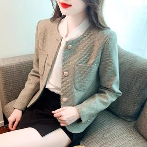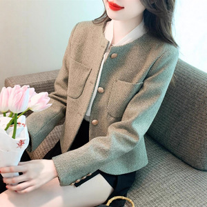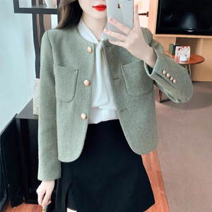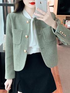 2025绿色小香风外套法式名媛2025早秋新款短款圆领设计感小众别致