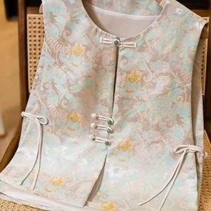 春装新款国风新中式开叉马甲女士复古国风圆领纽扣设计气质外穿潮