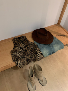 WGWE 韩系纯欲风辣妹豹纹印花手工挂脖多层荷叶边背心小衫女W6680