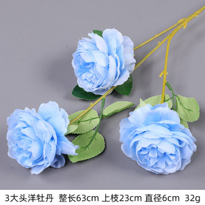 蓝色仿真花高级感逼真假花仿真玫瑰花婚庆婚礼装饰插花花束热销批