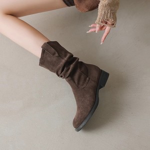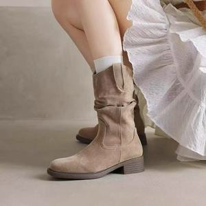 美拉德瘦瘦靴子女2025新款超火厚底中筒西部牛仔靴堆堆骑士靴