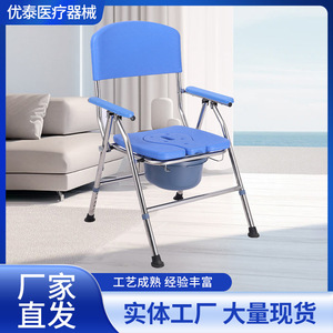 厂家供应家用坐便椅可移动折叠孕妇家用厕所高靠背不锈钢坐便椅
