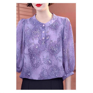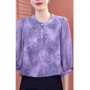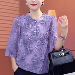 夏季薄款冰丝衬衫中老年装宽松大码显瘦宽松遮肚子洋气七分袖上衣