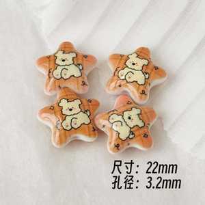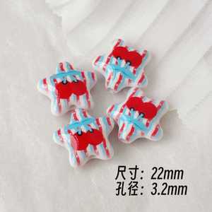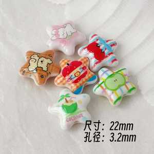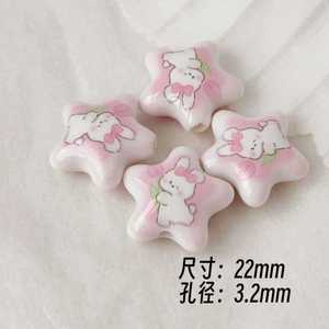 亚克力可爱印花小兔苹果五角星直孔散珠diy手机链串珠饰品配件
